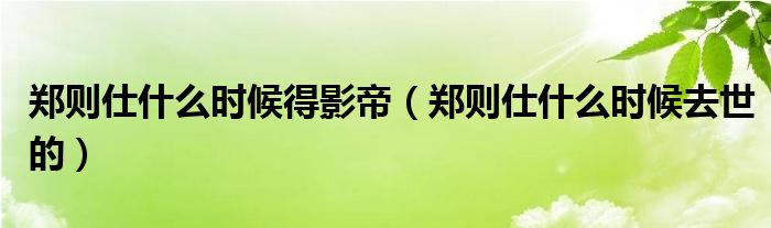 大家好,小生來(lái)為大家講解下。鄭則仕什么時(shí)候得影帝,鄭則仕什么時(shí)候去世的很多人還不知道,現(xiàn)在讓我們一起來(lái)看看吧!