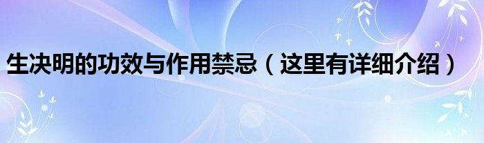 生決明作用:適用于頭痛眩暈、目赤翳障、視物昏花、青盲內(nèi)障、風(fēng)陽上擾。
