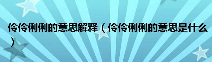 大家好,小生來為大家講解下。伶伶俐俐的意思解釋,伶伶俐俐的意思是什么很多人還不知道,現(xiàn)在讓我們一起來看看吧!