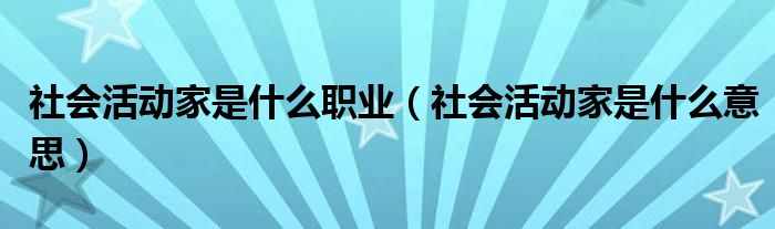 大家好,小生來(lái)為大家講解下。社會(huì)活動(dòng)家是什么職業(yè),社會(huì)活動(dòng)家是什么意思很多人還不知道,現(xiàn)在讓我們一起來(lái)看看吧!