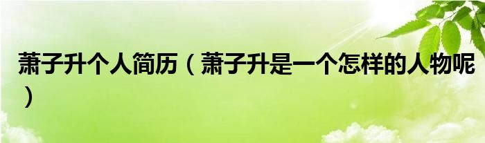 大家好,小生來為大家講解下。蕭子升個人簡歷,蕭子升是一個怎樣的人物呢很多人還不知道,現(xiàn)在讓我們一起來看看吧!