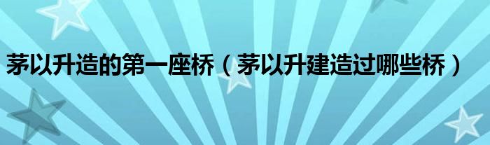 大家好,小生來(lái)為大家講解下。茅以升造的第一座橋,茅以升建造過(guò)哪些橋很多人還不知道,現(xiàn)在讓我們一起來(lái)看看吧!