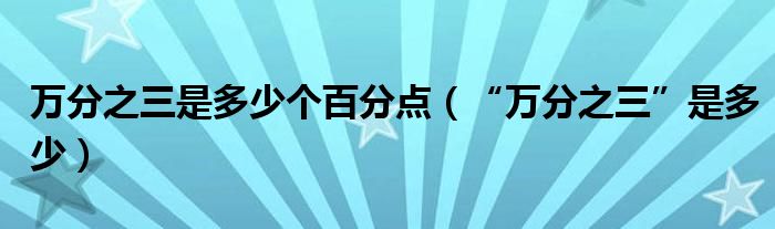 大家好,小生來為大家講解下。萬分之三是多少個百分點,“萬分之三”是多少很多人還不知道,現(xiàn)在讓我們一起來看看吧!