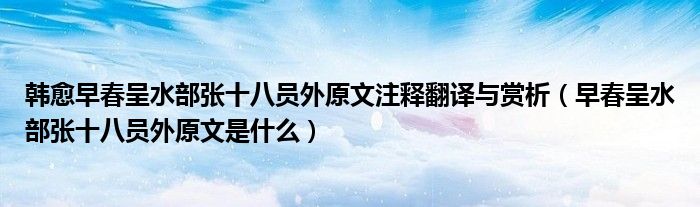 大家好,伊人來為大家解答以上問題。韓愈早春呈水部張十八員外原文注釋翻譯與賞析,早春呈水部張十八員外原文是什么很多人還不知道,現(xiàn)在讓我們一起來看看吧!