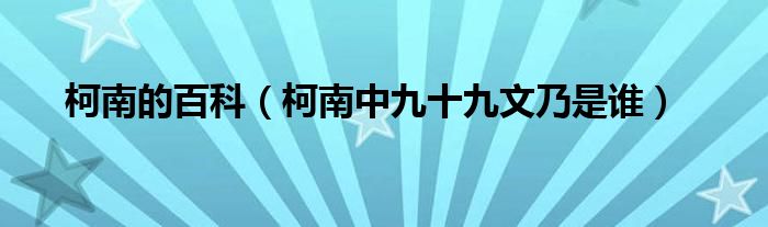 大家好,小生來為大家講解下。柯南的百科,柯南中九十九文乃是誰很多人還不知道,現在讓我們一起來看看吧!