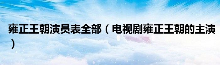大家好,伊人來為大家解答以上問題。雍正王朝演員表全部,電視劇雍正王朝的主演很多人還不知道,現(xiàn)在讓我們一起來看看吧!