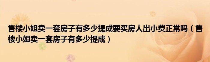 大家好,小生來(lái)為大家講解下。售樓小姐賣(mài)一套房子有多少提成要買(mǎi)房人出小費(fèi)正常嗎,售樓小姐賣(mài)一套房子有多少提成很多人還不知道,現(xiàn)在讓我們一起來(lái)看看吧!
