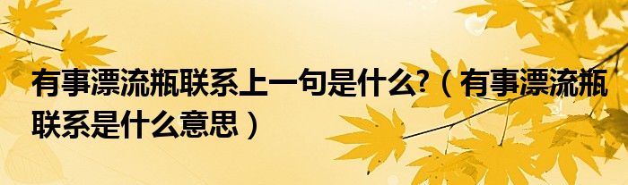 大家好,小生來為大家講解下。有事漂流瓶聯(lián)系上一句是什么?,有事漂流瓶聯(lián)系是什么意思很多人還不知道,現(xiàn)在讓我們一起來看看吧!