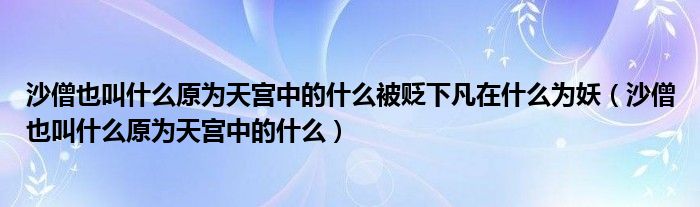 大家好,小生來為大家講解下。沙僧也叫什么原為天宮中的什么被貶下凡在什么為妖,沙僧也叫什么原為天宮中的什么很多人還不知道,現(xiàn)在讓我們一起來看看吧!