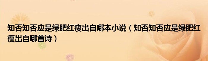大家好,小生來為大家講解下。知否知否應(yīng)是綠肥紅瘦出自哪本小說,知否知否應(yīng)是綠肥紅瘦出自哪首詩很多人還不知道,現(xiàn)在讓我們一起來看看吧!