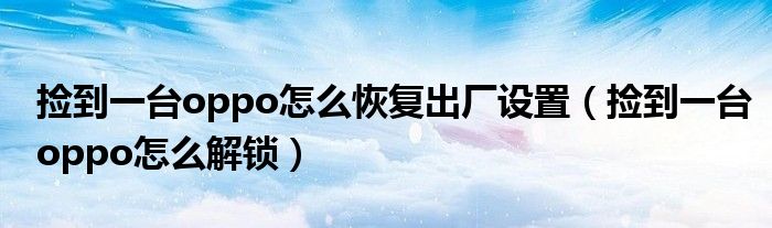 大家好,小生來為大家講解下。撿到一臺(tái)oppo怎么恢復(fù)出廠設(shè)置,撿到一臺(tái)oppo怎么解鎖很多人還不知道,現(xiàn)在讓我們一起來看看吧!