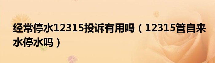 大家好,小生來為大家講解下。經(jīng)常停水12315投訴有用嗎,12315管自來水停水嗎很多人還不知道,現(xiàn)在讓我們一起來看看吧!