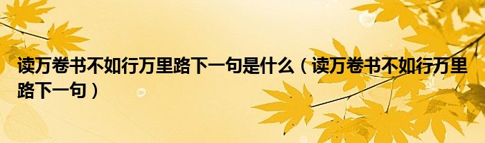 大家好,伊人來為大家解答以上問題。讀萬卷書不如行萬里路下一句是什么,讀萬卷書不如行萬里路下一句很多人還不知道,現(xiàn)在讓我們一起來看看吧!
