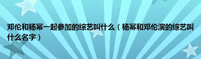 大家好,小生來為大家講解下。鄧倫和楊冪一起參加的綜藝叫什么,楊冪和鄧倫演的綜藝叫什么名字很多人還不知道,現(xiàn)在讓我們一起來看看吧!