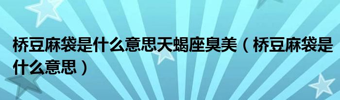 大家好,小生來為大家講解下。橋豆麻袋是什么意思天蝎座臭美,橋豆麻袋是什么意思很多人還不知道,現(xiàn)在讓我們一起來看看吧!