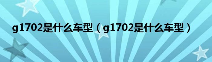 大家好,小生來為大家講解下。g1702是什么車型,g1702是什么車型很多人還不知道,現(xiàn)在讓我們一起來看看吧!