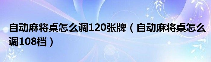 大家好,小生來為大家講解下。自動(dòng)麻將桌怎么調(diào)120張牌,自動(dòng)麻將桌怎么調(diào)108檔很多人還不知道,現(xiàn)在讓我們一起來看看吧!
