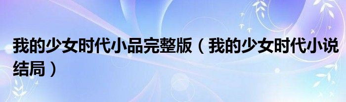 大家好,小生來為大家講解下。我的少女時(shí)代小品完整版,我的少女時(shí)代小說結(jié)局很多人還不知道,現(xiàn)在讓我們一起來看看吧!