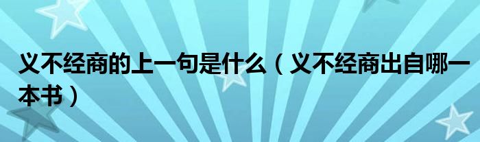 大家好,小生來(lái)為大家講解下。義不經(jīng)商的上一句是什么,義不經(jīng)商出自哪一本書(shū)很多人還不知道,現(xiàn)在讓我們一起來(lái)看看吧!
