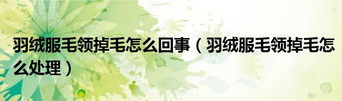 大家好,小生來為大家講解下。羽絨服毛領掉毛怎么回事,羽絨服毛領掉毛怎么處理很多人還不知道,現(xiàn)在讓我們一起來看看吧!