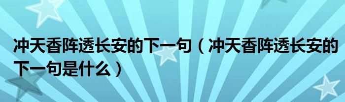 大家好,小生來為大家講解下。沖天香陣透長安的下一句,沖天香陣透長安的下一句是什么很多人還不知道,現(xiàn)在讓我們一起來看看吧!