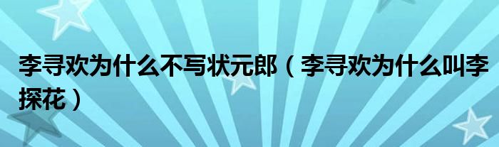 大家好,小生來(lái)為大家講解下。李尋歡為什么不寫(xiě)狀元郎,李尋歡為什么叫李探花很多人還不知道,現(xiàn)在讓我們一起來(lái)看看吧!