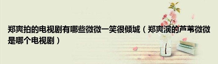 大家好,小生來為大家講解下。鄭爽拍的電視劇有哪些微微一笑很傾城,鄭爽演的蘆葦微微是哪個電視劇很多人還不知道,現(xiàn)在讓我們一起來看看吧!