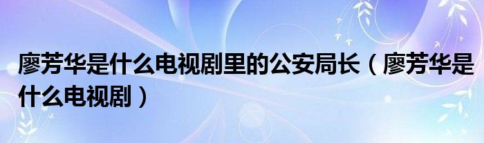 大家好,小生來為大家講解下。廖芳華是什么電視劇里的公安局長,廖芳華是什么電視劇很多人還不知道,現(xiàn)在讓我們一起來看看吧!