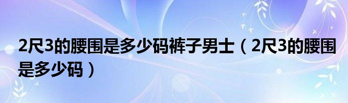 大家好,小生來(lái)為大家講解下。2尺3的腰圍是多少碼褲子男士,2尺3的腰圍是多少碼很多人還不知道,現(xiàn)在讓我們一起來(lái)看看吧!