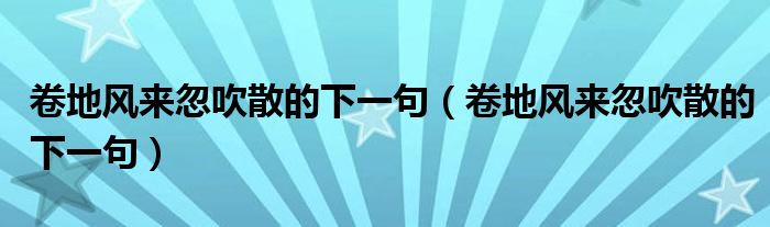 大家好,小生來為大家講解下。卷地風來忽吹散的下一句,卷地風來忽吹散的下一句很多人還不知道,現(xiàn)在讓我們一起來看看吧!