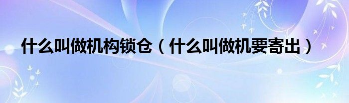 大家好,小生來為大家講解下。什么叫做機(jī)構(gòu)鎖倉,什么叫做機(jī)要寄出很多人還不知道,現(xiàn)在讓我們一起來看看吧!