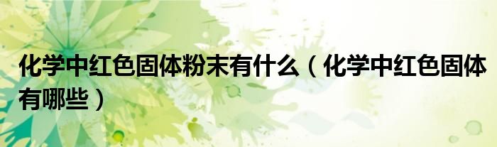 大家好,小生來(lái)為大家講解下?;瘜W(xué)中紅色固體粉末有什么,化學(xué)中紅色固體有哪些很多人還不知道,現(xiàn)在讓我們一起來(lái)看看吧!