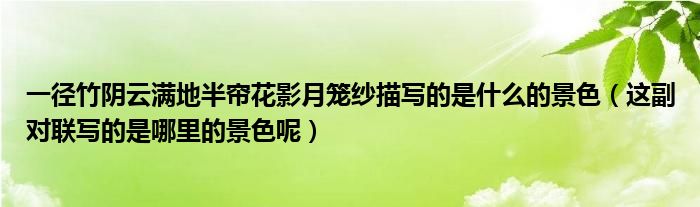 大家好,伊人來為大家解答以上問題。一徑竹陰云滿地半簾花影月籠紗描寫的是什么的景色,這副對聯(lián)寫的是哪里的景色呢很多人還不知道,現(xiàn)在讓我們一起來看看吧!