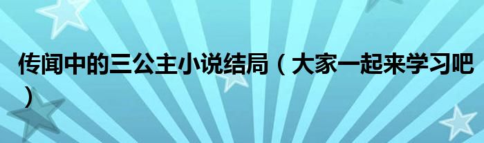 大家好,伊人來為大家解答以上問題。傳聞中的三公主小說結(jié)局,大家一起來學(xué)習(xí)吧很多人還不知道,現(xiàn)在讓我們一起來看看吧!