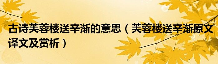大家好,伊人來為大家解答以上問題。古詩芙蓉樓送辛漸的意思,芙蓉樓送辛漸原文譯文及賞析很多人還不知道,現(xiàn)在讓我們一起來看看吧!