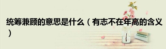 大家好,伊人來為大家解答以上問題。統(tǒng)籌兼顧的意思是什么,有志不在年高的含義很多人還不知道,現(xiàn)在讓我們一起來看看吧!