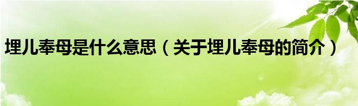 大家好,伊人來為大家解答以上問題。埋兒奉母是什么意思,關(guān)于埋兒奉母的簡介很多人還不知道,現(xiàn)在讓我們一起來看看吧!