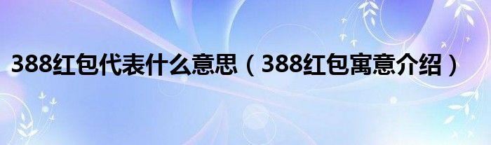 大家好,伊人來為大家解答以上問題。388紅包代表什么意思,388紅包寓意介紹很多人還不知道,現(xiàn)在讓我們一起來看看吧!