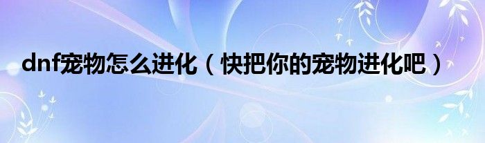 大家好,伊人來為大家解答以上問題。dnf寵物怎么進(jìn)化,快把你的寵物進(jìn)化吧很多人還不知道,現(xiàn)在讓我們一起來看看吧!