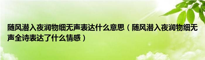 大家好,伊人來為大家解答以上問題。隨風潛入夜?jié)櫸锛殶o聲表達什么意思,隨風潛入夜?jié)櫸锛殶o聲全詩表達了什么情感很多人還不知道,現(xiàn)在讓我們一起來看看吧!