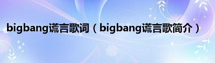 大家好,伊人來為大家解答以上問題。bigbang謊言歌詞,bigbang謊言歌簡介很多人還不知道,現(xiàn)在讓我們一起來看看吧!