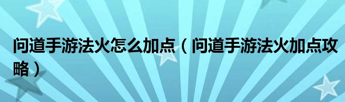 大家好,伊人來為大家解答以上問題。問道手游法火怎么加點,問道手游法火加點攻略很多人還不知道,現(xiàn)在讓我們一起來看看吧!