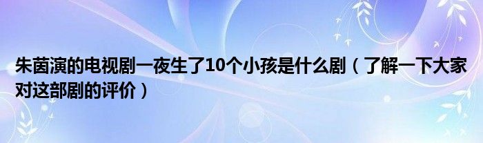 大家好,伊人來為大家解答以上問題。朱茵演的電視劇一夜生了10個小孩是什么劇,了解一下大家對這部劇的評價很多人還不知道,現(xiàn)在讓我們一起來看看吧!