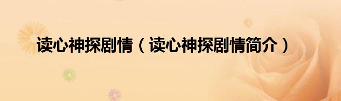 大家好,伊人來為大家解答以上問題。讀心神探劇情,讀心神探劇情簡(jiǎn)介很多人還不知道,現(xiàn)在讓我們一起來看看吧!
