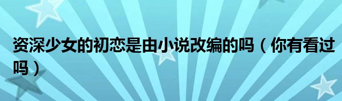 大家好,伊人來為大家解答以上問題。資深少女的初戀是由小說改編的嗎,你有看過嗎很多人還不知道,現(xiàn)在讓我們一起來看看吧!