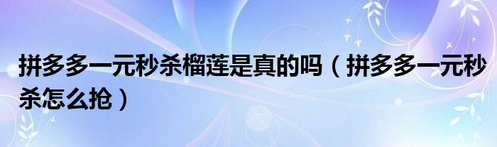 大家好,小生來為大家講解下。拼多多一元秒殺榴蓮是真的嗎,拼多多一元秒殺怎么搶很多人還不知道,現(xiàn)在讓我們一起來看看吧!