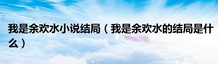 大家好,伊人來為大家解答以上問題。我是余歡水小說結(jié)局,我是余歡水的結(jié)局是什么很多人還不知道,現(xiàn)在讓我們一起來看看吧!