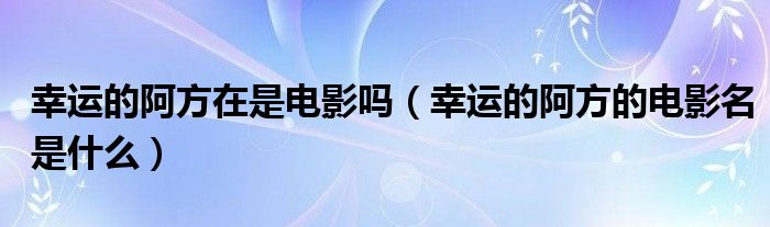 大家好,小生來為大家講解下。幸運(yùn)的阿方在是電影嗎,幸運(yùn)的阿方的電影名是什么很多人還不知道,現(xiàn)在讓我們一起來看看吧!