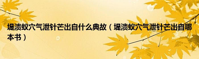 大家好,小生來(lái)為大家講解下。堤潰蟻穴氣泄針芒出自什么典故,堤潰蟻穴氣泄針芒出自哪本書(shū)很多人還不知道,現(xiàn)在讓我們一起來(lái)看看吧!