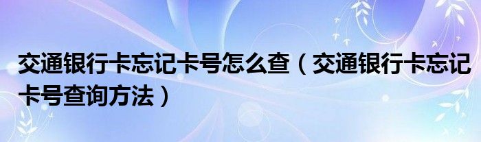 大家好,伊人來為大家解答以上問題。交通銀行卡忘記卡號怎么查,交通銀行卡忘記卡號查詢方法很多人還不知道,現(xiàn)在讓我們一起來看看吧!